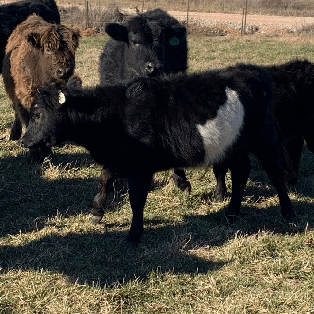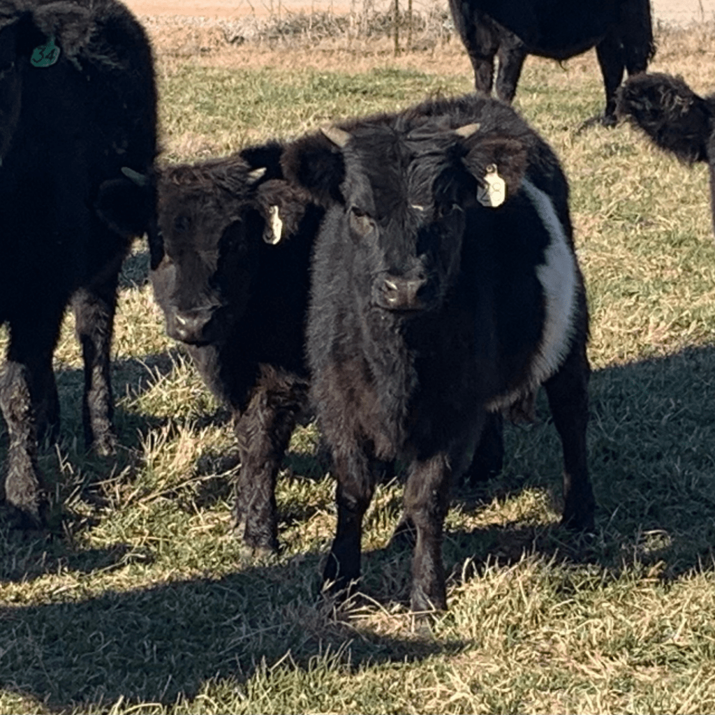 She is sired by Maximus, a miniature HighPark bull standing 37 inches and chondro-positive. Her dam, Snickerdoodle, is a dun Dexter cow standing 40 inches and chondro-negative. Moon Pie was pasture raised and was her dam’s first calf. Her dam calves easily and maintains a well attached udder with a calm disposition.