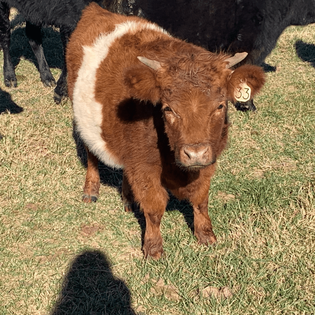 Strawberry is a small framed red belted Miniature HighPark cross heifer with a stout build and plenty of eye appeal. She is expected to mature well under 40 inches, making her a strong fit for a miniature or boutique breeding program.